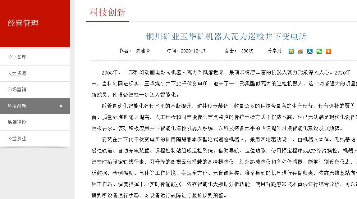 擁有和瓦力一樣炯炯有神、充滿智慧的“大眼睛”,全天候不知疲倦、忠于職守的巡檢機器人,極大地提升了巡檢質(zhì)量,降低了巡檢過程中的安全隱患,高效作業(yè)代替人工巡檢,推進(jìn)智能升級和減員提效。這個瓦力不一般,迅速成為“智慧礦山”建設(shè)浪潮中的新晉代言人。(朱建鋒)