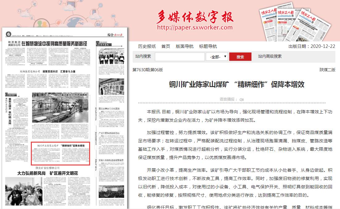 銅川礦業(yè)陳家山煤礦 “精耕細作”促降本增效