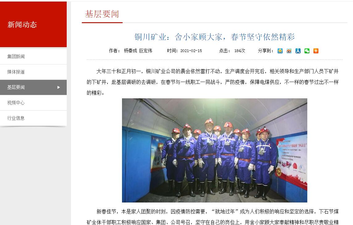 大年三十和正月初一,銅川礦業(yè)公司的晨會依然雷打不動,生產(chǎn)調(diào)度會開完后,相關(guān)領(lǐng)導和生產(chǎn)部門人員下礦井的下礦井,赴基層調(diào)研的去調(diào)研,在春節(jié)與一線職工一同戰(zhàn)斗,嚴防疫情,保障電煤供應(yīng),不一樣的春節(jié)過出不一樣的精彩。