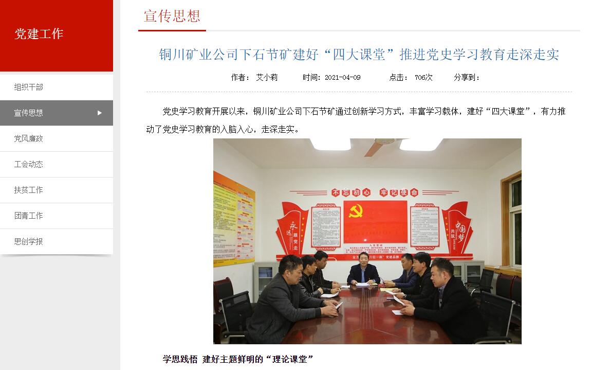 黨史學(xué)習(xí)教育開展以來(lái),銅川礦業(yè)公司下石節(jié)礦通過(guò)創(chuàng)新學(xué)習(xí)方式,豐富學(xué)習(xí)載體,建好“四大課堂”,有力推動(dòng)了黨史學(xué)習(xí)教育的入腦入心,走深走實(shí)。