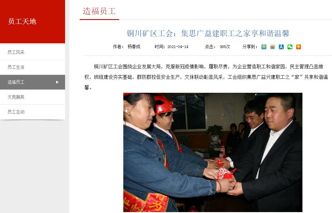 銅川礦區(qū)工會圍繞企業(yè)發(fā)展大局,克服新冠疫情影響,履職盡責(zé),為企業(yè)營造職工和諧家園,民主管理凸顯維權(quán),班組建設(shè)夯實(shí)基礎(chǔ),群防群控促安全生產(chǎn),文體聯(lián)動彰顯風(fēng)采,工會組織集思廣益興建職工之“家”共享和諧溫馨。