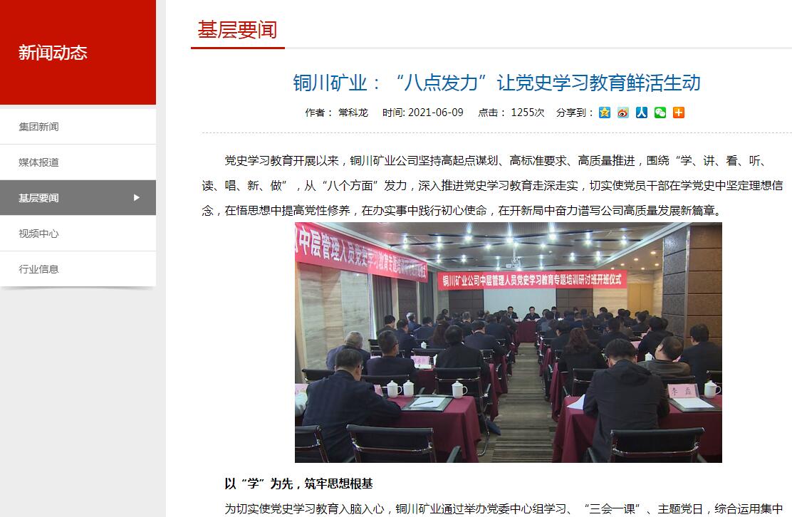 黨史學習教育開展以來,銅川礦業(yè)公司堅持高起點謀劃、高標準要求、高質(zhì)量推進,圍繞“學、講、看、聽、讀、唱、新、做”,從“八個方面”發(fā)力,深入推進黨史學習教育走深走實,切實使黨員干部在學黨史中堅定理想信念,在悟思想中提高黨性修養(yǎng),在辦實事中踐行初心使命,在開新局中奮力譜寫公司高質(zhì)量發(fā)展新篇章。