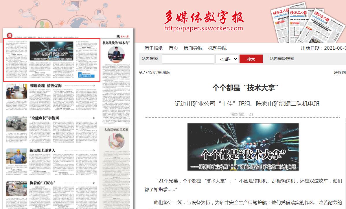 “21個(gè)兄弟,個(gè)個(gè)都是‘技術(shù)大拿’?!辈还苁蔷C掘機(jī)、刮板輸送機(jī),還是雙速絞車,他們都了如指掌……”
