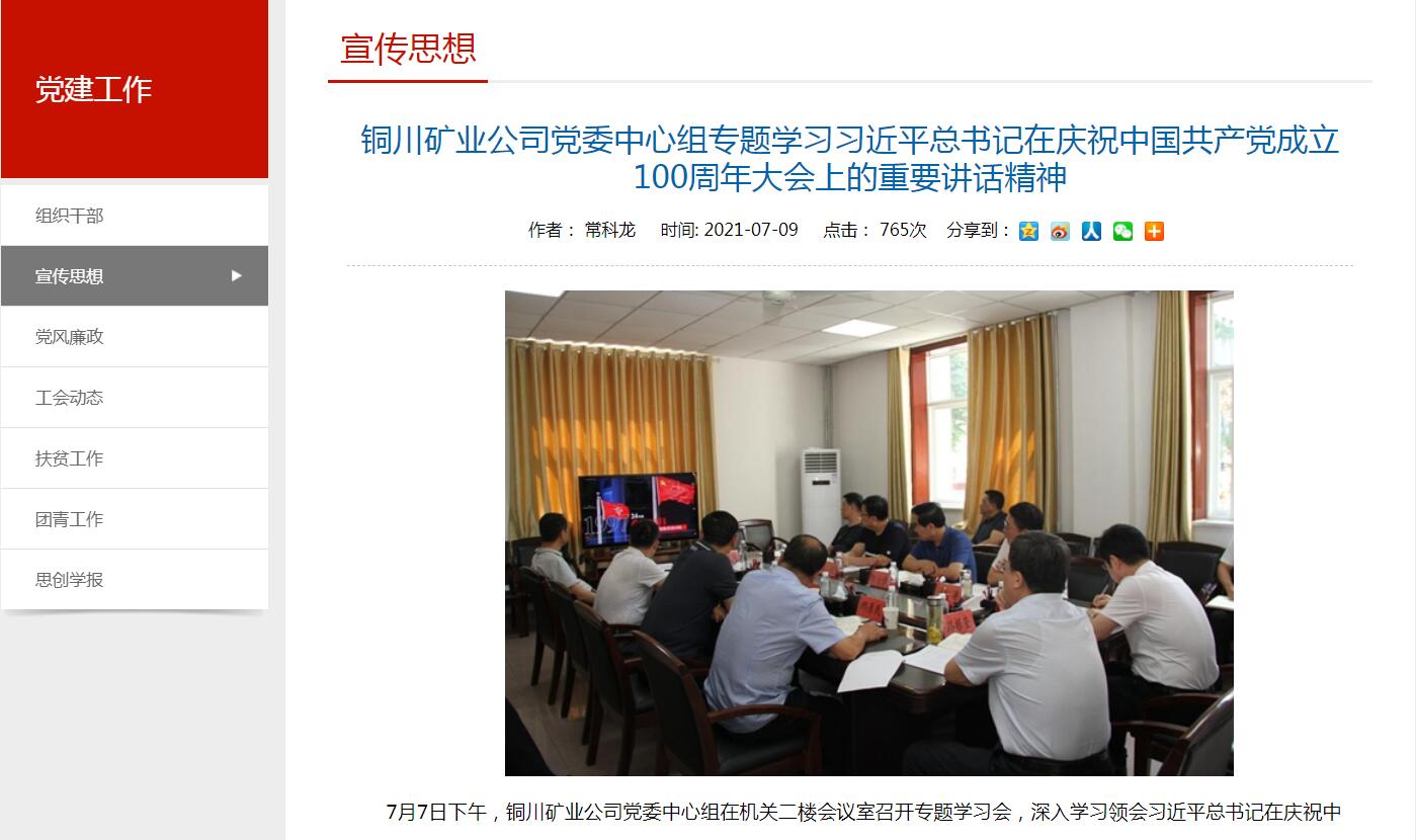 7月7日下午,銅川礦業(yè)公司黨委中心組在機(jī)關(guān)二樓會(huì)議室召開(kāi)專題學(xué)習(xí)會(huì),深入學(xué)習(xí)領(lǐng)會(huì)習(xí)近平總書記在慶祝中國(guó)共產(chǎn)黨成立100周年大會(huì)上的重要講話精神。會(huì)議由公司黨委書記、執(zhí)行董事劉水利主持。公司黨委中心組成員參加會(huì)議,公司有關(guān)部門負(fù)責(zé)人列席會(huì)議。