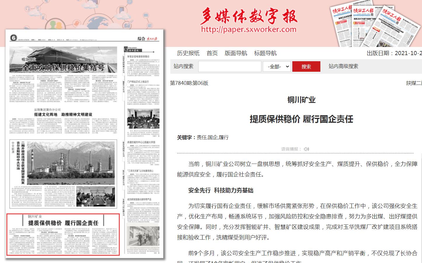 當(dāng)前,銅川礦業(yè)公司樹立一盤棋思想,統(tǒng)籌抓好安全生產(chǎn)、煤質(zhì)提升、保供穩(wěn)價(jià),全力保障能源供應(yīng)安全,履行國企社會(huì)責(zé)任。
