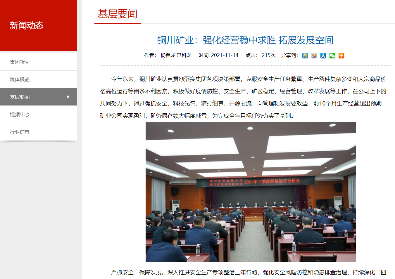 今年以來(lái),銅川礦業(yè)認(rèn)真貫徹落實(shí)集團(tuán)各項(xiàng)決策部署,克服安全生產(chǎn)任務(wù)繁重、生產(chǎn)條件復(fù)雜多變和大宗商品價(jià)格高位運(yùn)行等諸多不利因素,積極做好疫情防控、安全生產(chǎn)、礦區(qū)穩(wěn)定、經(jīng)營(yíng)管理、改革發(fā)展等工作,在公司上下的共同努力下,通過強(qiáng)抓安全,科技先行,精打細(xì)算,開源節(jié)流,向管理和發(fā)展要效益,前10個(gè)月生產(chǎn)經(jīng)營(yíng)超出預(yù)期,礦業(yè)公司實(shí)現(xiàn)盈利,礦務(wù)局存續(xù)大幅度減虧,為完成全年目標(biāo)任務(wù)夯實(shí)了基礎(chǔ)。