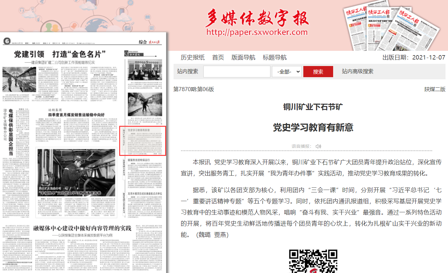 銅川礦業(yè)下石節(jié)礦黨史學(xué)習(xí)教育有新意
