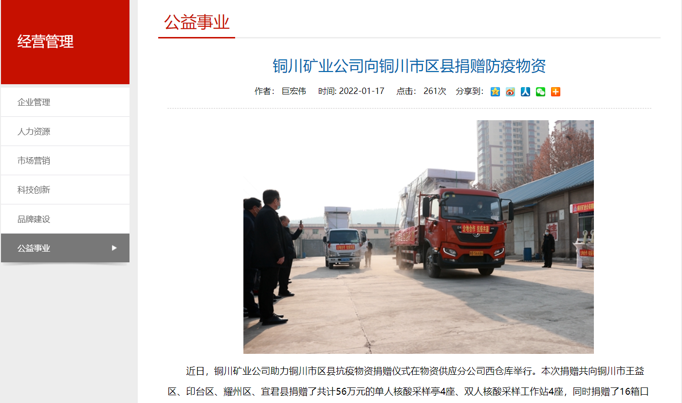 捐贈(zèng)儀式上,該公司對(duì)屬地政府對(duì)銅川礦業(yè)公司抗擊疫情、復(fù)工復(fù)產(chǎn)、保障發(fā)展等工作給予的支持表示衷心的感謝。并表示,銅川礦業(yè)作為國(guó)有企業(yè),將繼續(xù)在積極抗擊疫情,維護(hù)社會(huì)穩(wěn)定,服務(wù)推動(dòng)銅川經(jīng)濟(jì)社會(huì)發(fā)展中體現(xiàn)國(guó)企的社會(huì)責(zé)任和擔(dān)當(dāng)作為,相信在大家的共同努力下,一定能夠打贏疫情防控的阻擊戰(zhàn)、攻堅(jiān)戰(zhàn),并祝愿企地?cái)y手前行,合作更加深入。