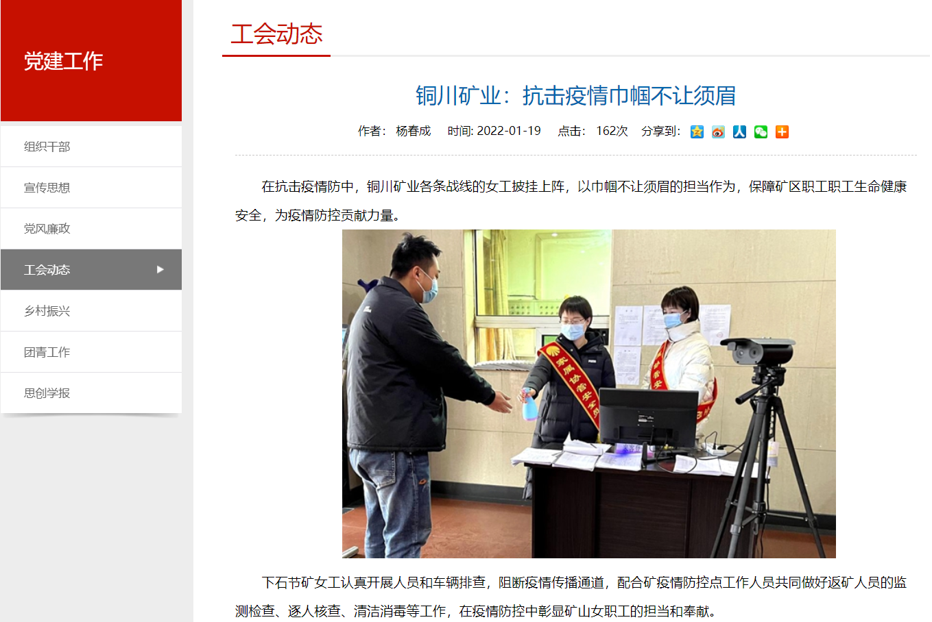 在抗擊疫情防中,銅川礦業(yè)各條戰(zhàn)線的女工披掛上陣,以巾幗不讓須眉的擔(dān)當(dāng)作為,保障礦區(qū)職工職工生命健康安全,為疫情防控貢獻(xiàn)力量。