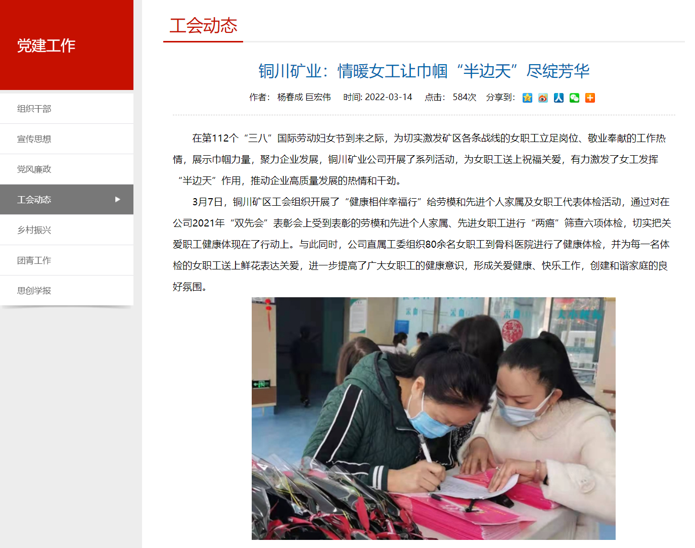 在第112個(gè)“三八”國(guó)際勞動(dòng)?jì)D女節(jié)到來(lái)之際,為切實(shí)激發(fā)礦區(qū)各條戰(zhàn)線的女職工立足崗位、敬業(yè)奉獻(xiàn)的工作熱情,展示巾幗力量,聚力企業(yè)發(fā)展,銅川礦業(yè)公司開(kāi)展了系列活動(dòng),為女職工送上祝福關(guān)愛(ài),有力激發(fā)了女工發(fā)揮“半邊天”作用,推動(dòng)企業(yè)高質(zhì)量發(fā)展的熱情和干勁。
