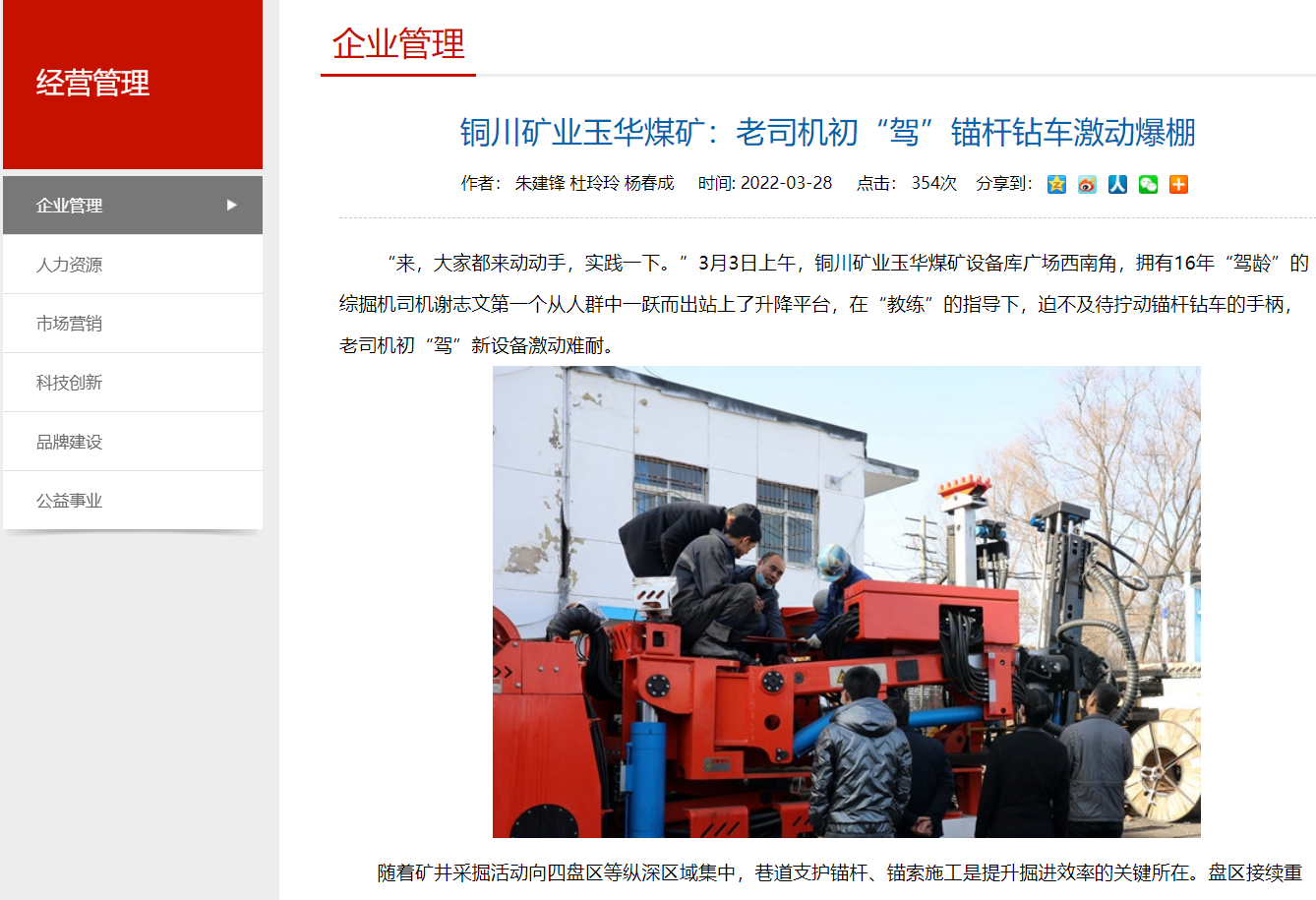 “來,大家都來動(dòng)動(dòng)手,實(shí)踐一下。”3月3日上午,銅川礦業(yè)玉華煤礦設(shè)備庫廣場(chǎng)西南角,擁有16年“駕齡”的綜掘機(jī)司機(jī)謝志文第一個(gè)從人群中一躍而出站上了升降平臺(tái),在“教練”的指導(dǎo)下,迫不及待擰動(dòng)錨桿鉆車的手柄,老司機(jī)初“駕”新設(shè)備激動(dòng)難耐。