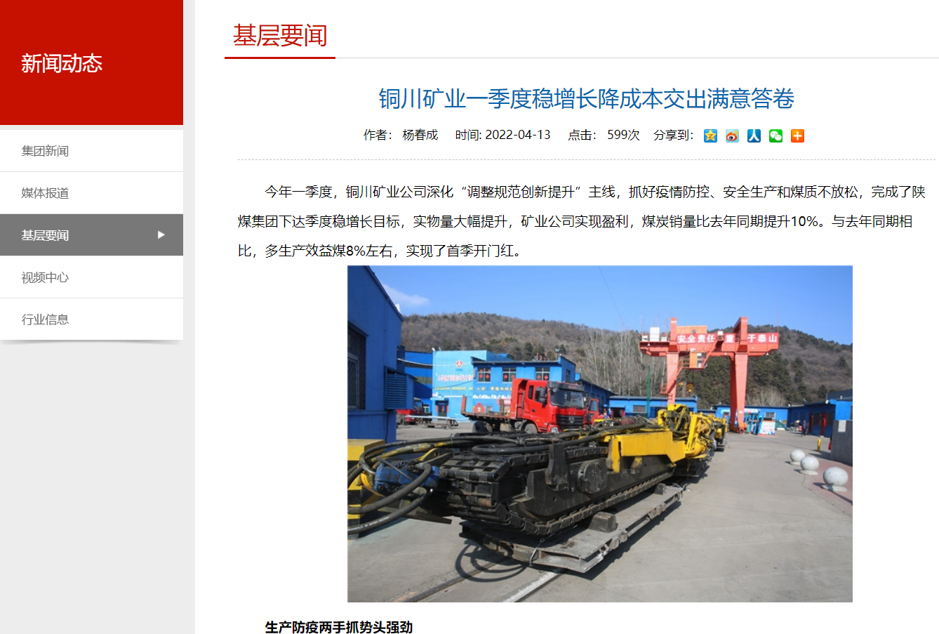 今年一季度,銅川礦業(yè)公司深化“調(diào)整規(guī)范創(chuàng)新提升”主線,抓好疫情防控、安全生產(chǎn)和煤質(zhì)不放松,完成了陜煤集團下達季度穩(wěn)增長目標,實物量大幅提升,礦業(yè)公司實現(xiàn)盈利,煤炭銷量比去年同期提升10%。與去年同期相比,多生產(chǎn)效益煤8%左右,實現(xiàn)了首季開門紅。