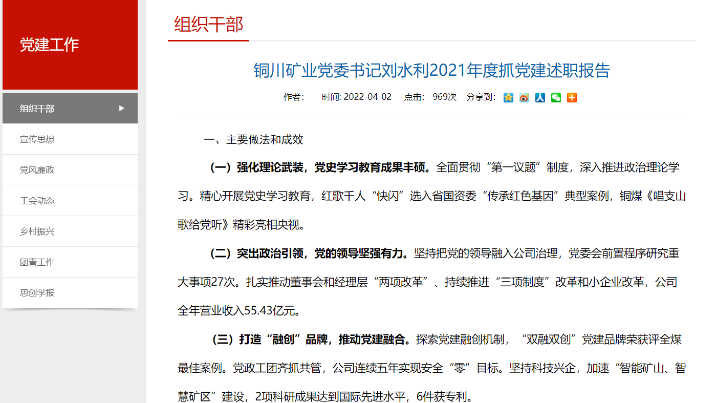 (一)強化理論武裝,黨史學習教育成果豐碩。全面貫徹“第一議題”制度,深入推進政治理論學習。精心開展黨史學習教育,紅歌千人“快閃”選入省國資委“傳承紅色基因”典型案例,銅煤《唱支山歌給黨聽》精彩亮相央視。