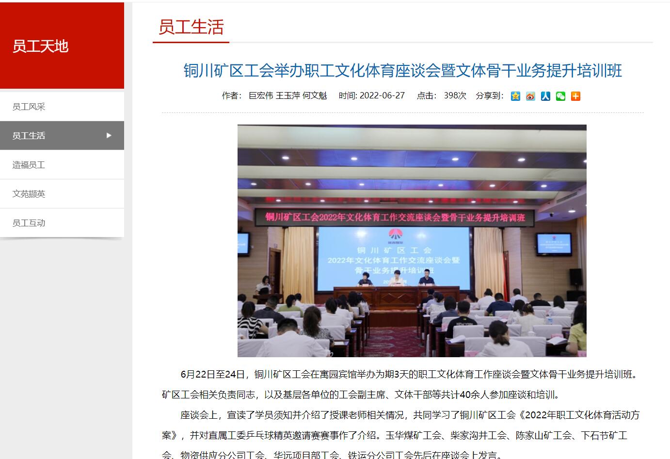 6月22日至24日,銅川礦區(qū)工會在寓園賓館舉辦為期3天的職工文化體育工作座談會暨文體骨干業(yè)務提升培訓班。礦區(qū)工會相關負責同志,以及基層各單位的工會副主席、文體干部等共計40余人參加座談和培訓。