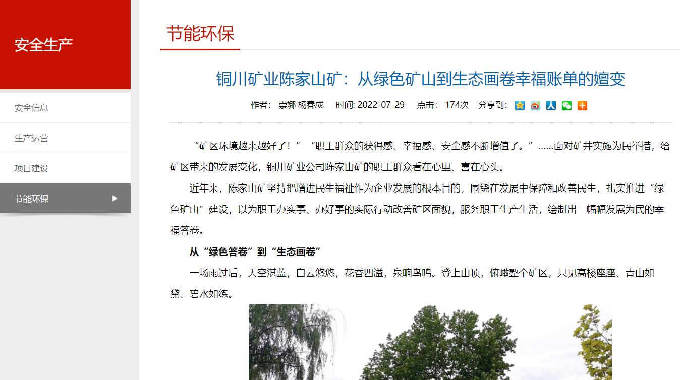 “礦區(qū)環(huán)境越來越好了!”“職工群眾的獲得感、幸福感、安全感不斷增值了。”……面對礦井實施為民舉措,給礦區(qū)帶來的發(fā)展變化,銅川礦業(yè)公司陳家山礦的職工群眾看在心里、喜在心頭。
