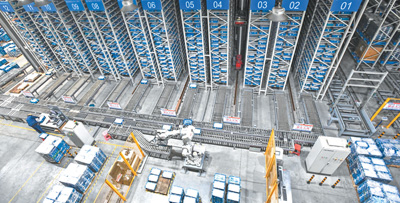 江西省宜春市蘇強格液壓有限公司智能高架倉儲中心的機器人在碼垛機械配件。該公司累計投入1.2億元進行智能化升級改造,生產(chǎn)效率提高40%以上,成本降低20%左右。