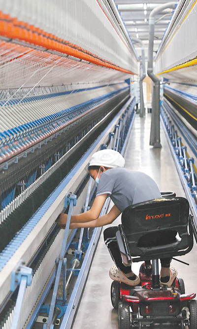 江蘇省南通市大生集團的數(shù)字化紡紗車間擁有全流程國產(chǎn)設(shè)備示范生產(chǎn)線,用工僅需15人/萬錠。