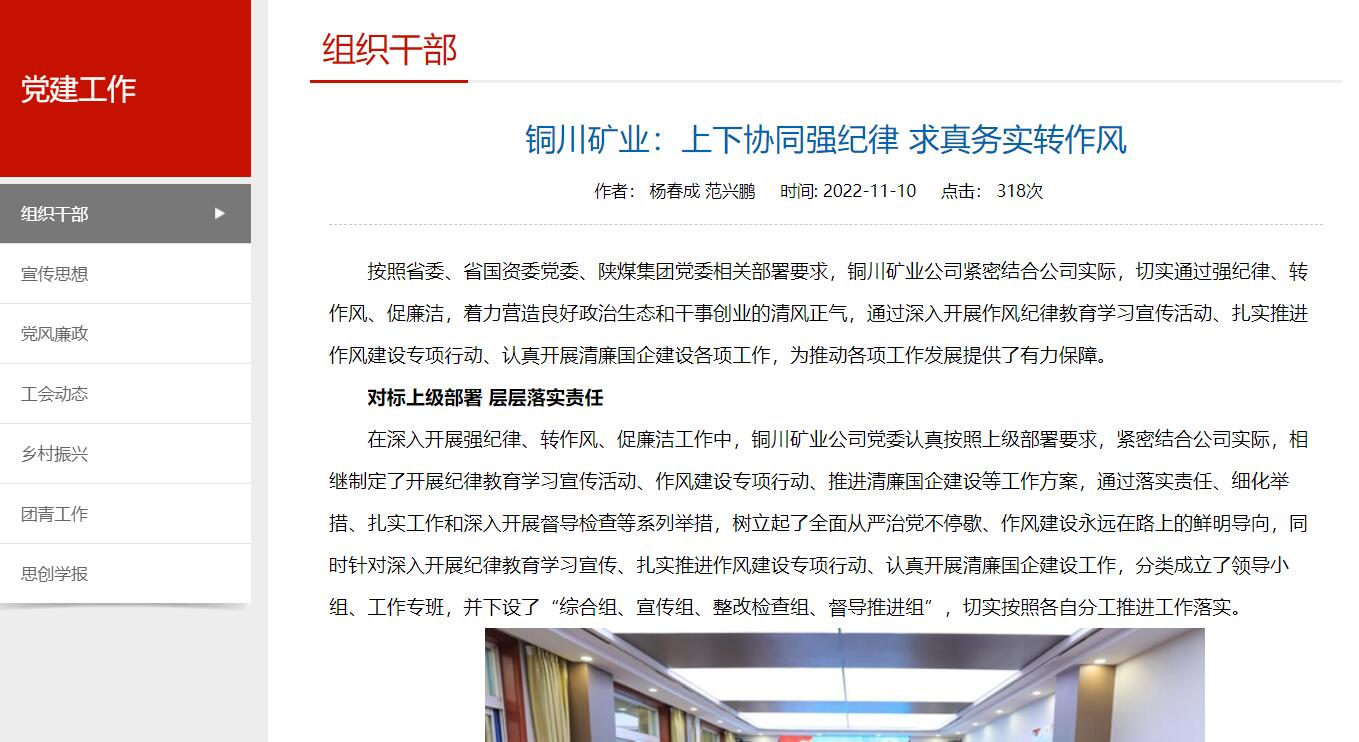 按照省委、省國資委黨委、陜煤集團(tuán)黨委相關(guān)部署要求,銅川礦業(yè)公司緊密結(jié)合公司實際,切實通過強(qiáng)紀(jì)律、轉(zhuǎn)作風(fēng)、促廉潔,著力營造良好政治生態(tài)和干事創(chuàng)業(yè)的清風(fēng)正氣,通過深入開展作風(fēng)紀(jì)律教育學(xué)習(xí)宣傳活動、扎實推進(jìn)作風(fēng)建設(shè)專項行動、認(rèn)真開展清廉國企建設(shè)各項工作,為推動各項工作發(fā)展提供了有力保障。