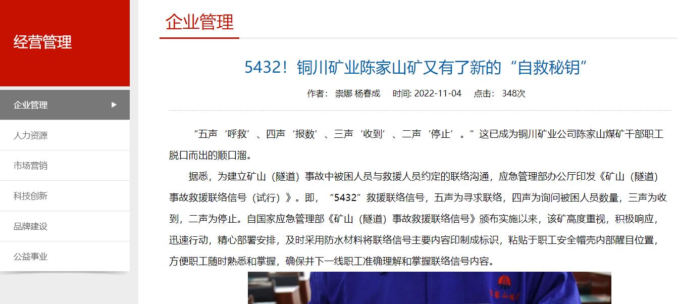 據(jù)悉,為建立礦山(隧道)事故中被困人員與救援人員約定的聯(lián)絡溝通,應急管理部辦公廳印發(fā)《礦山(隧道)事故救援聯(lián)絡信號(試行)》。即,“5432”救援聯(lián)絡信號,五聲為尋求聯(lián)絡,四聲為詢問被困人員數(shù)量,三聲為收到,二聲為停止。自國家應急管理部《礦山(隧道)事故救援聯(lián)絡信號》頒布實施以來,該礦高度重視,積極響應,迅速行動,精心部署安排,及時采用防水材料將聯(lián)絡信號主要內(nèi)容印制成標識,粘貼于職工安全帽殼內(nèi)部醒目位置,方便職工隨時熟悉和掌握,確保井下一線職工準確理解和掌握聯(lián)絡信號內(nèi)容。