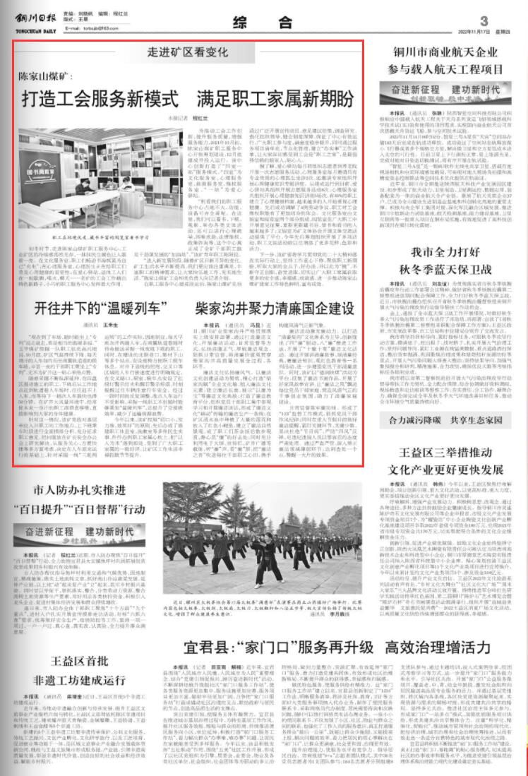 下一步,該礦要將學(xué)習(xí)貫徹黨的二十大精神落在實際行動上,堅持工作重心下移,聚焦職工新期盼,聽取大家的金點(diǎn)子、好辦法,并以此為“鏡”,不斷守正創(chuàng)新、奮發(fā)進(jìn)取,切實讓廣大職工家屬獲取更多的安全感、幸福感、成就感,進(jìn)一步推動陳家山煤礦建家工作特色鮮明、富有成效。