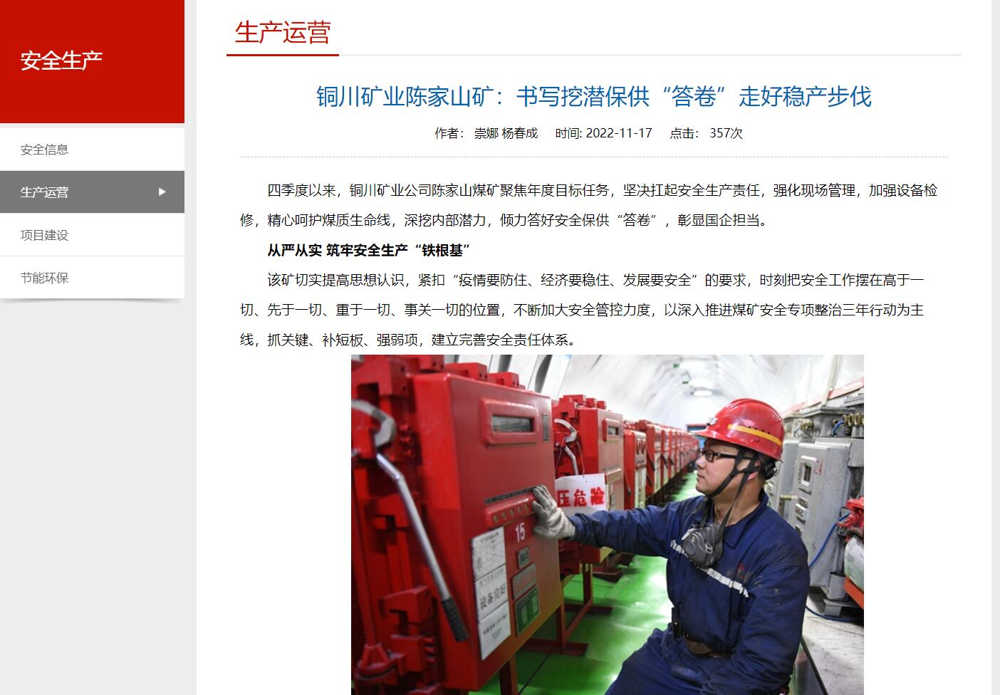 四季度以來,銅川礦業(yè)公司陳家山煤礦聚焦年度目標任務(wù),堅決扛起安全生產(chǎn)責(zé)任,強化現(xiàn)場管理,加強設(shè)備檢修,精心呵護煤質(zhì)生命線,深挖內(nèi)部潛力,傾力答好安全保供“答卷”,彰顯國企擔(dān)當(dāng)。