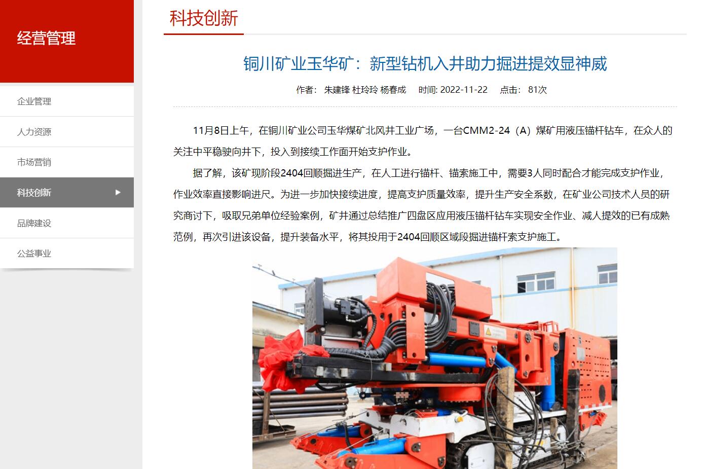 11月8日上午,在銅川礦業(yè)公司玉華煤礦北風(fēng)井工業(yè)廣場(chǎng),一臺(tái)CMM2-24(A)煤礦用液壓錨桿鉆車(chē),在眾人的關(guān)注中平穩(wěn)駛向井下,投入到接續(xù)工作面開(kāi)始支護(hù)作業(yè)。