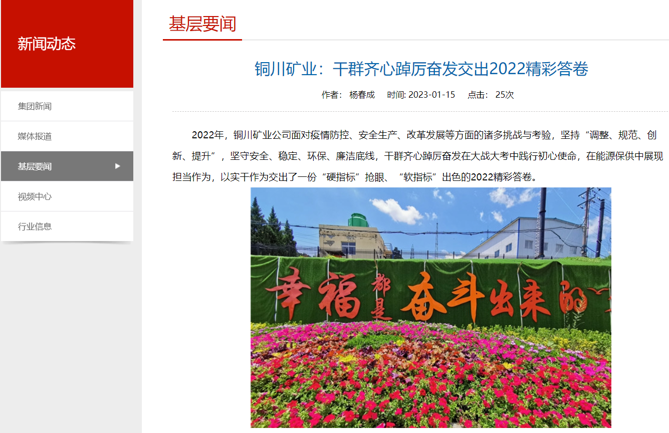 新的一年、新的期許,新的征程、新的出發(fā)。2023年,銅川礦業(yè)公司廣大干部職工繼續(xù)努力以踔厲奮發(fā)、只爭朝夕、干事創(chuàng)業(yè)的實(shí)際行動再譜新篇章。(楊春成)
