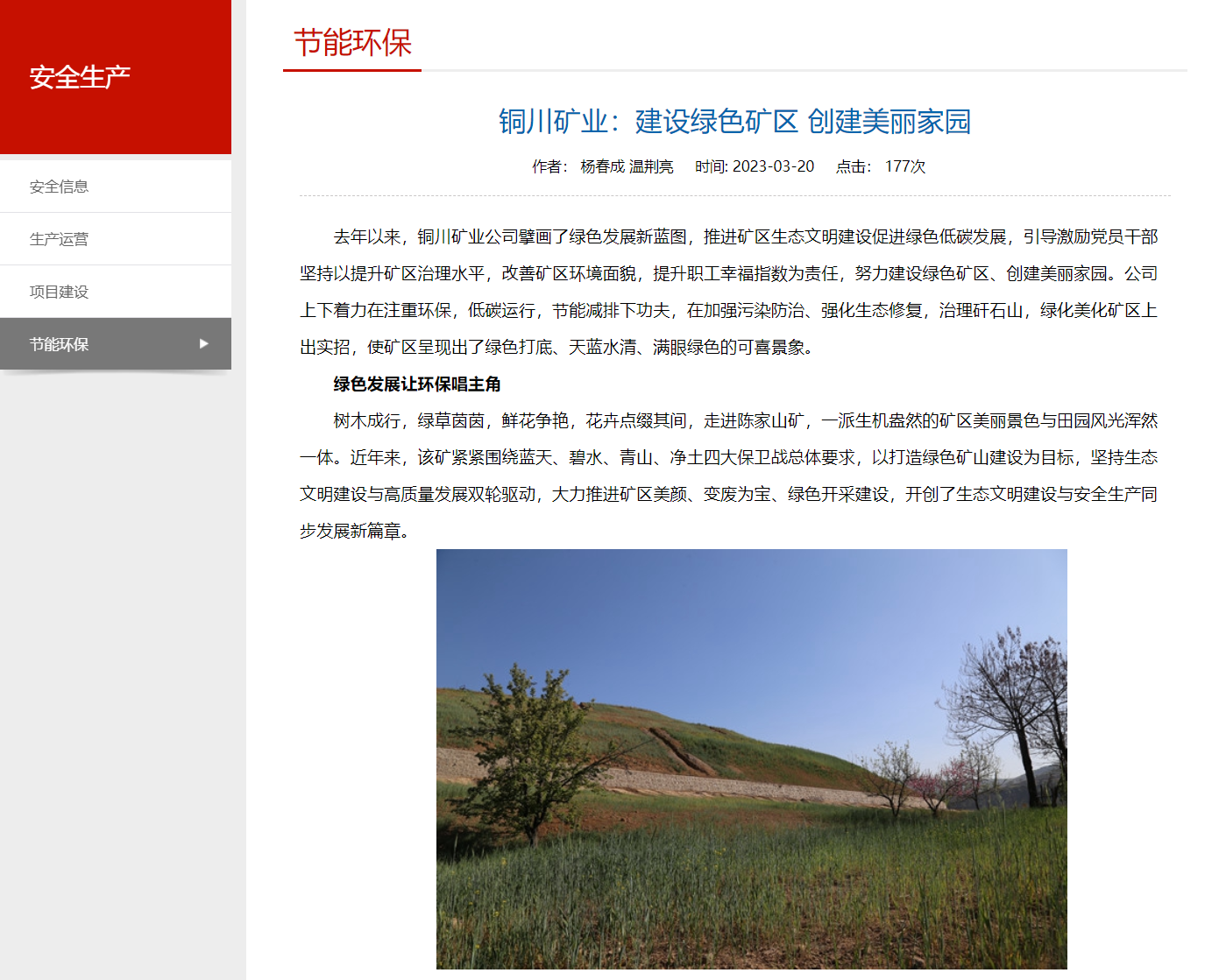 去年以來,銅川礦業(yè)公司擘畫了綠色發(fā)展新藍(lán)圖,推進(jìn)礦區(qū)生態(tài)文明建設(shè)促進(jìn)綠色低碳發(fā)展,引導(dǎo)激勵(lì)黨員干部堅(jiān)持以提升礦區(qū)治理水平,改善礦區(qū)環(huán)境面貌,提升職工幸福指數(shù)為責(zé)任,努力建設(shè)綠色礦區(qū)、創(chuàng)建美麗家園。公司上下著力在注重環(huán)保,低碳運(yùn)行,節(jié)能減排下功夫,在加強(qiáng)污染防治、強(qiáng)化生態(tài)修復(fù),治理矸石山,綠化美化礦區(qū)上出實(shí)招,使礦區(qū)呈現(xiàn)出了綠色打底、天藍(lán)水清、滿眼綠色的可喜景象。