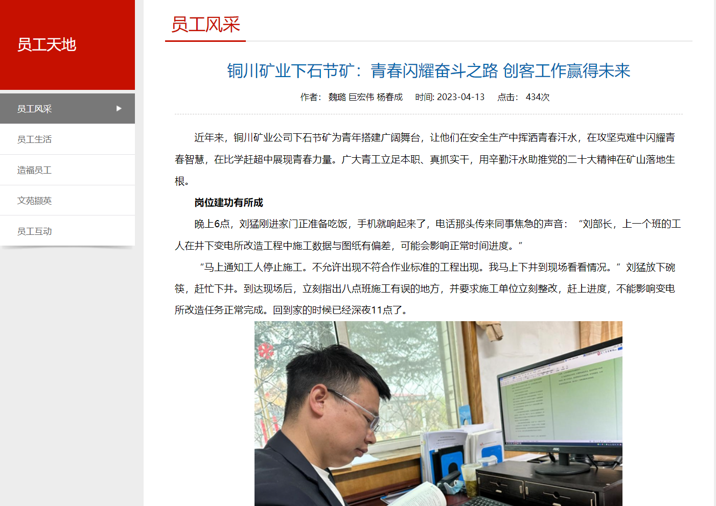 在下石節(jié)礦的各條生產(chǎn)戰(zhàn)線上,還有許多青年正在演繹著崗位建功、崗位成才的故事,他們用奮斗報(bào)效企業(yè),用無悔青春之光照亮礦山奮斗之路。(魏璐 巨宏偉 楊春成)