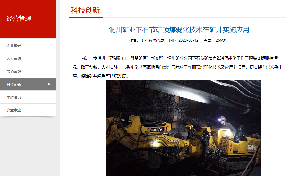 為進(jìn)一步推進(jìn)“智能礦山、智慧礦區(qū)”新實(shí)踐,銅川礦業(yè)公司下石節(jié)礦結(jié)合224智能化工作面頂煤實(shí)際賦存情況,敢于創(chuàng)新,大膽實(shí)踐,帶頭實(shí)施《高瓦斯易自燃煤層綜放工作面頂煤弱化技術(shù)及應(yīng)用》項(xiàng)目,切實(shí)提升煤炭采出率,保障礦井綠色可持續(xù)發(fā)展。