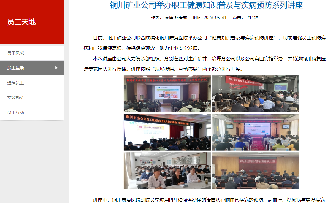 日前,銅川礦業(yè)公司聯(lián)合陜煤化銅川康復(fù)醫(yī)院舉辦公司“健康知識普及與疾病預(yù)防講座”,切實增強員工預(yù)防疾病和自我保健意識,傳播健康理念,助力企業(yè)安全發(fā)展。