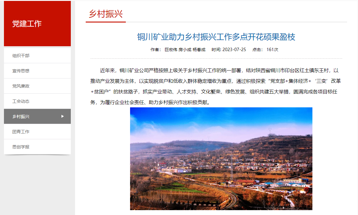 近年來,銅川礦業(yè)公司嚴(yán)格按照上級關(guān)于鄉(xiāng)村振興工作的統(tǒng)一部署,結(jié)對陜西省銅川市印臺(tái)區(qū)紅土鎮(zhèn)東王村,以推動(dòng)產(chǎn)業(yè)發(fā)展為主體,以實(shí)現(xiàn)脫貧戶和低收入群體穩(wěn)定增收為重點(diǎn),通過積極探索“黨支部+集體經(jīng)濟(jì)+‘三變’改革+貧困戶”的扶貧路子,抓實(shí)產(chǎn)業(yè)帶動(dòng)、人才支持、文化繁榮、綠色發(fā)展、組織共建五大舉措,圓滿完成各項(xiàng)目標(biāo)任務(wù),為履行企業(yè)社會(huì)責(zé)任、助力鄉(xiāng)村振興作出積極貢獻(xiàn)。