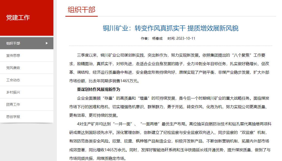 4對生產(chǎn)礦井均達到“一井一面”、“一面兩巷”最優(yōu)生產(chǎn)布局。高位抽采自燃防治技術(shù)和鉆孔替代高抽巷兩項科研成果達到國際領(lǐng)先水平。深化管理創(chuàng)新,創(chuàng)新建立了紀檢監(jiān)察與安全監(jiān)察雙向進入、同步監(jiān)察的“雙監(jiān)察”機制,有效防范各類安全風(fēng)險。欣塑、欣盛、楓樺等產(chǎn)品制造企業(yè),積極開發(fā)新產(chǎn)品,不斷創(chuàng)新營銷機制,拓展內(nèi)外部市場成效顯著,同比增收1465萬余元。同時,發(fā)揮好智能選矸系統(tǒng)和玉華鐵路延長線開通優(yōu)勢,提升煤炭質(zhì)量,做到了與市場同頻共振,用煤質(zhì)穩(wěn)定市場。