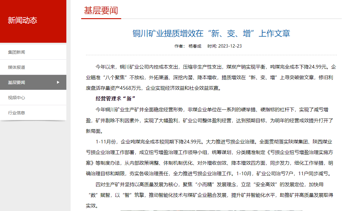 銅川礦業(yè)提質增效在“新、變、增”上作文章