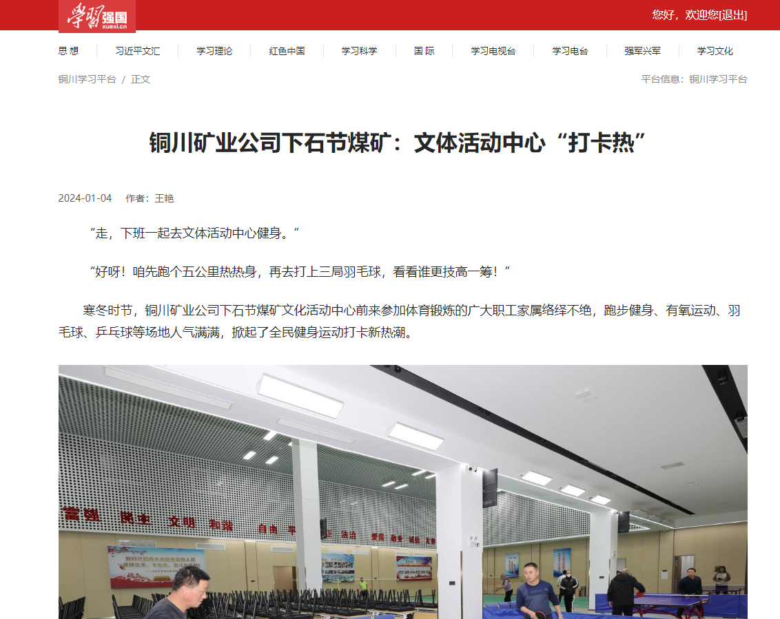 寒冬時(shí)節(jié),銅川礦業(yè)公司下石節(jié)煤礦文化活動(dòng)中心前來參加體育鍛煉的廣大職工家屬絡(luò)繹不絕,跑步健身、有氧運(yùn)動(dòng)、羽毛球、乒乓球等場(chǎng)地人氣滿滿,掀起了全民健身運(yùn)動(dòng)打卡新熱潮。