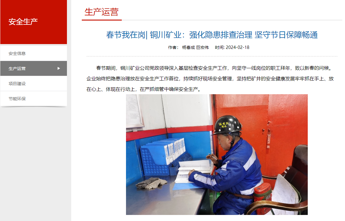 春節(jié)我在崗| 銅川礦業(yè):強化隱患排查治理 堅守節(jié)日保障暢通