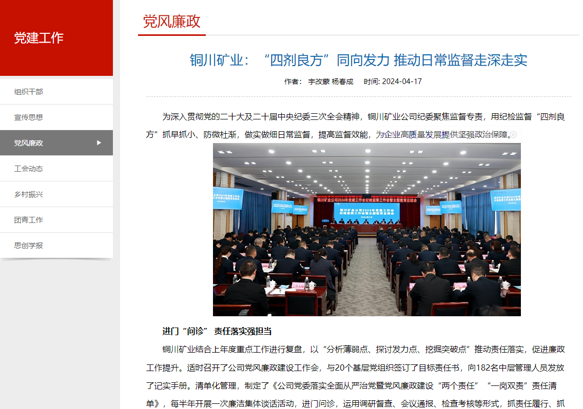 為深入貫徹黨的二十大及二十屆中央紀(jì)委三次全會(huì)精神,銅川礦業(yè)公司紀(jì)委聚焦監(jiān)督專責(zé),用紀(jì)檢監(jiān)督“四劑良方”抓早抓小、防微杜漸,做實(shí)做細(xì)日常監(jiān)督,提高監(jiān)督效能,為企業(yè)高質(zhì)量發(fā)展提供堅(jiān)強(qiáng)政治保障。