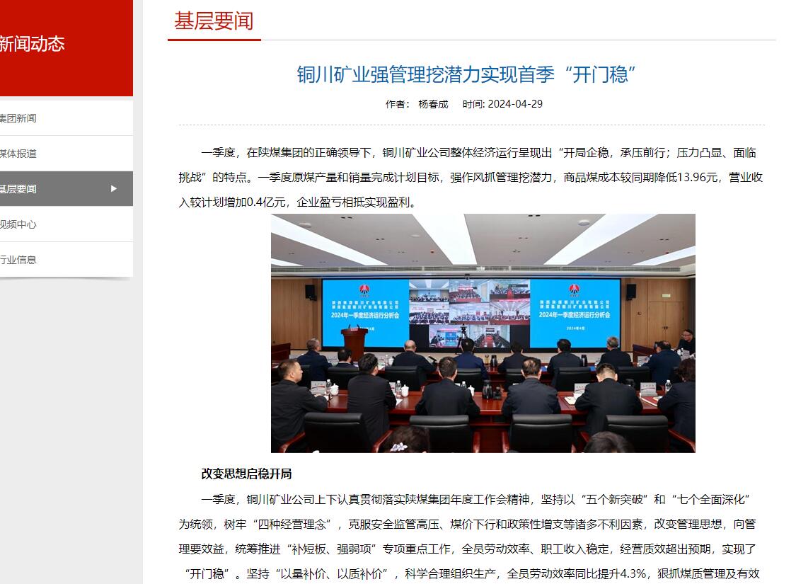 銅川礦業(yè)強管理挖潛力實現(xiàn)首季“開門穩(wěn)”