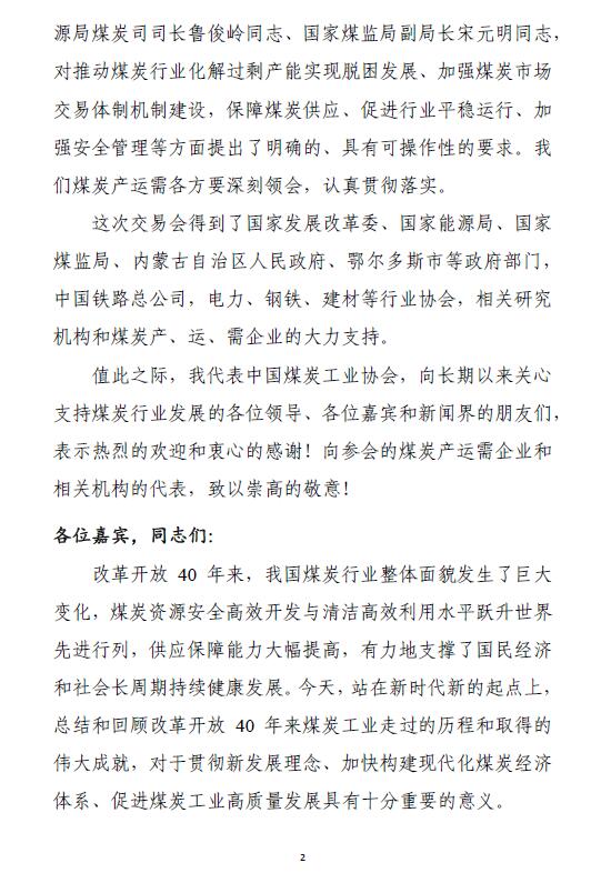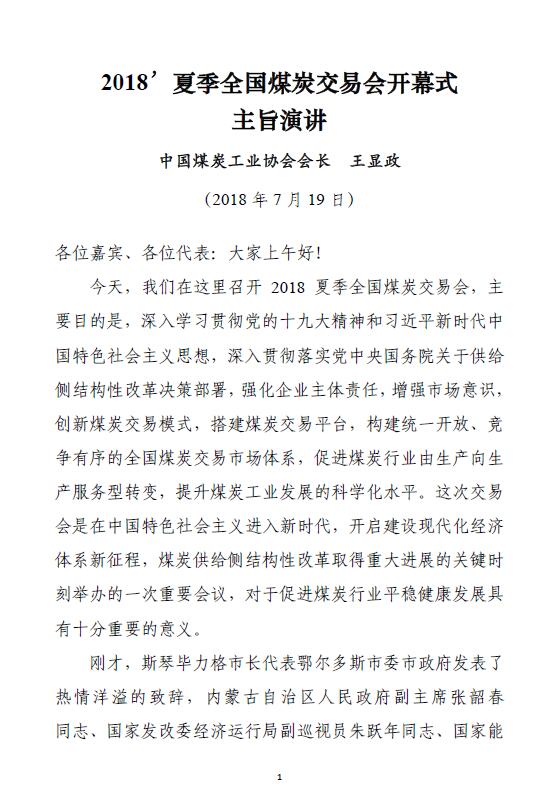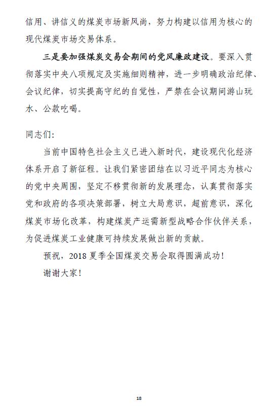 2018’夏季全國煤炭交易會開幕式主旨演講