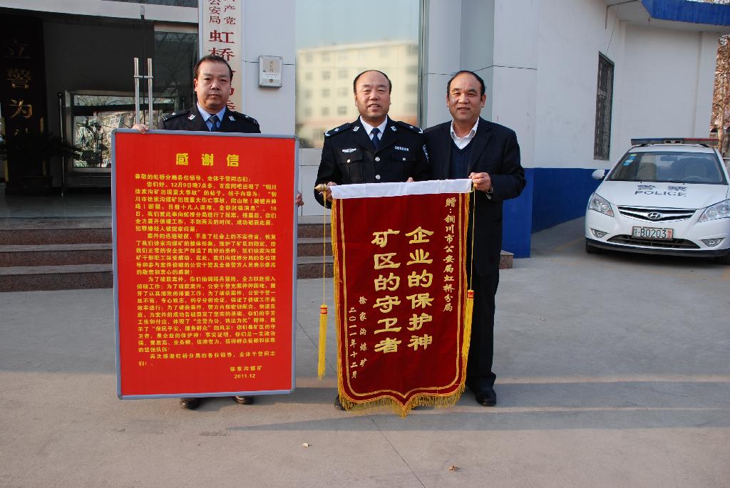 12月9日晚7點(diǎn)多,互聯(lián)網(wǎng)上出現(xiàn)了“銅川徐家溝礦出現(xiàn)重大事故”的帖子。帖子內(nèi)容為:“銅川市徐家溝煤礦出現(xiàn)重大傷亡事故,爬山猴(隧道升降繩)斷裂。目前十幾人遇難,全部封鎖消息”。事發(fā)后,該礦立即就此事向虹橋分局報(bào)案。接案后,虹橋分局全力展開偵破工作,不到兩天的時(shí)間,成功破獲此案,并犯罪嫌疑人捉拿歸案。案件的迅速破獲,平息了社會(huì)上的不實(shí)傳言,恢復(fù)了徐家溝煤礦的整體形象,維護(hù)了礦區(qū)的穩(wěn)定,給礦區(qū)正常的安全生產(chǎn)創(chuàng)造了條件。徐家溝煤礦黨政領(lǐng)導(dǎo)親自帶隊(duì)給虹橋分局送去了錦旗和感謝信,表達(dá)對(duì)虹橋分局的領(lǐng)導(dǎo)和參與案件偵破的公安干警及全體警方人員表示崇高的敬意。