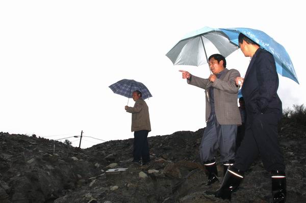 次日一大早,該礦礦長(zhǎng)李文輝立即命宣傳部利用廣播向全礦職工家屬發(fā)出緊急通知,要求居住在滑坡地帶的住戶,一定要注意自身安全,精心觀察,一有變化,及時(shí)匯報(bào),以便第一時(shí)間處理險(xiǎn)情。同時(shí)命令由各科室人員組成的“三防”突擊隊(duì)30余人立即集合,并分成四個(gè)小組立即對(duì)礦區(qū)各工業(yè)場(chǎng)所和生活區(qū)進(jìn)行拉網(wǎng)式險(xiǎn)情排查,“三防”指揮部政委、黨委副書(shū)記李建榮則帶領(lǐng)一組人立即前往險(xiǎn)情較重的選運(yùn)區(qū)。 選運(yùn)區(qū)選煤樓陜北村區(qū)域下,是該礦鐵路運(yùn)輸?shù)难屎硪溃瑩?jù)選運(yùn)區(qū)隊(duì)長(zhǎng)匯報(bào),該處已有垮塌跡象,嚴(yán)重威脅鐵路運(yùn)輸。在去往選運(yùn)區(qū)災(zāi)情現(xiàn)場(chǎng)的路上,因?yàn)榇笥昴酀舨豢埃质巧掀侣?,卻并沒(méi)有阻止一行人前進(jìn)的腳步,走到險(xiǎn)情發(fā)生地,李建榮一邊詢問(wèn)選運(yùn)區(qū)長(zhǎng)災(zāi)害發(fā)生情況,一邊指示隨行來(lái)的相關(guān)科室人員立即拿出搶修方案,待搶修工作落實(shí)后,一行人又對(duì)另一區(qū)域進(jìn)行排查,當(dāng)走到去往醫(yī)院的“溫馨路”段,發(fā)現(xiàn)護(hù)坡垮塌處有住戶時(shí),立即指示隨行人員,妥善安置住戶,待險(xiǎn)情排除后,再讓住戶搬回來(lái)。此時(shí)另外幾組“三防”隊(duì)員將排查情況也一一上報(bào)到三防指揮部。為了深入了解險(xiǎn)情,三防隊(duì)員多次深入住戶家現(xiàn)場(chǎng)了解情況,并認(rèn)真作好記錄,以便及時(shí)解決。