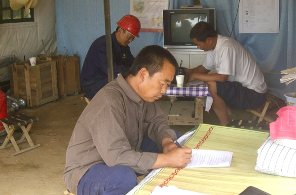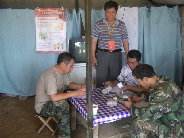 7月20日,天氣炎熱,皎陽似火,地質(zhì)勘測(cè)公司2011年技術(shù)比武大賽在野外4號(hào)生產(chǎn)鉆機(jī)現(xiàn)場(chǎng)舉行,來自各鉆機(jī)選拔的技術(shù)能手站成兩排摩拳擦掌、斗志昂揚(yáng),隨著技術(shù)比武總指揮地勘公司總工寇青安同志的一聲令下,各參賽組隊(duì)員爭(zhēng)先恐后、緊張有序地投入了比賽。生產(chǎn)鉆機(jī)類3個(gè)項(xiàng)目包括實(shí)踐操作(上下一趟鉆);巖心辨認(rèn);理論考試(安全專業(yè)知識(shí)問答題)。