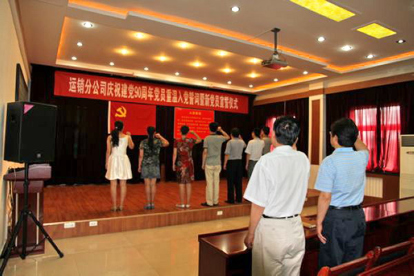 為了迎接中國共產(chǎn)黨成立90周年的到來,運銷分公司黨總支組織全體黨員開展了豐富的慶?;顒?。一是舉行了黨員重溫入黨誓詞暨新黨員宣誓儀式,二是舉辦了慶祝建黨90周年圖片展,內(nèi)容豐富,形式多樣。