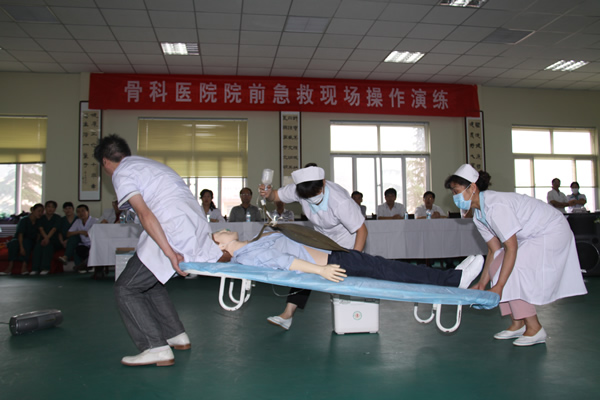 隨著醫(yī)護人員抬著擔架快步離開,一場緊張而迅速有序的突發(fā)急救工作宣告結(jié)束。這是供應處骨科醫(yī)院舉辦院前急救常用技術(shù)現(xiàn)場操作演練的一個精彩畫面。從接到急救電話,到醫(yī)護人員出診,再到現(xiàn)場緊急救治,最后救治病人,人員配合協(xié)調(diào),現(xiàn)場救治程序合理、規(guī)范,得到在場專家、領導的贊口不絕。