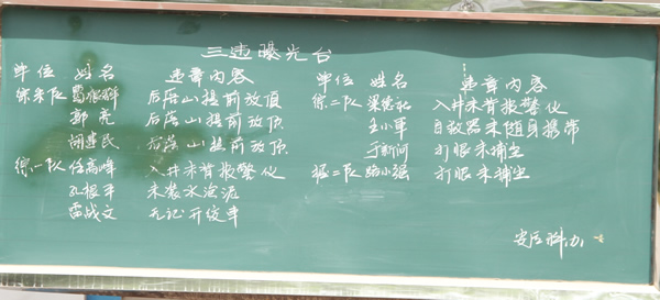 班組制定安全公約,職工寫出安全保證,進一步提高職工的責(zé)任感和使命感。各單位學(xué)習(xí)室里安全園地內(nèi)容貼近安全生產(chǎn)月主題,讓職工在耳熏目染中牢記安全的重要性。并組織礦退休老職工走進區(qū)隊,走上講臺,用自己多年的工作經(jīng)歷教育廣大職工遵章守紀,遠離“三違”,永保安全。