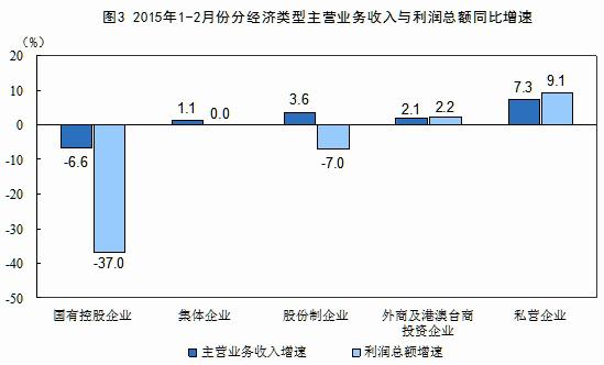 1-2月份,在規(guī)模以上工業(yè)企業(yè)中,國有控股企業(yè)實(shí)現(xiàn)利潤總額1342.4億元,同比下降37%;集體企業(yè)實(shí)現(xiàn)利潤總額66.8億元,同比持平;股份制企業(yè)實(shí)現(xiàn)利潤總額4739.5億元,下降7%;外商及港澳臺(tái)商投資企業(yè)實(shí)現(xiàn)利潤總額1842.7億元,增長2.2%;私營企業(yè)實(shí)現(xiàn)利潤總額2895.9億元,增長9.1%。