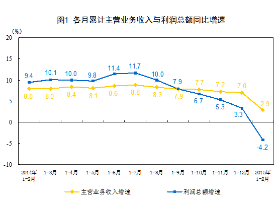 1-2月份,全國規(guī)模以上工業(yè)企業(yè)實(shí)現(xiàn)利潤總額7452.4億元,同比下降4.2%。