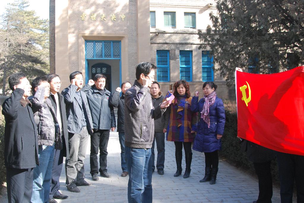 通過對延安的參觀學(xué)習(xí),給新黨員們上了一堂生動的革命傳統(tǒng)教育課,參觀期間及返回途中,大家紛紛發(fā)表參觀學(xué)習(xí)感言,帶隊的院黨委副書記王石貴在參觀棗園時凝重地說:“不容易啊,我們的共和國來之不易,老一輩革命家打江山更是不易啊”!新黨員趙存生面對當(dāng)年穿著補(bǔ)丁的毛主席相片深有感觸地說:“普天之下有那個國家的領(lǐng)袖穿著補(bǔ)丁褲子帶領(lǐng)人民鬧革命?只有我們的偉大領(lǐng)袖毛主席!毛主席的革命精神非常感人”。新黨員李超在參觀后說:“當(dāng)年毛主席、黨中央能夠在那么艱苦的條件下帶領(lǐng)人民鬧革命,靠的就是實現(xiàn)共產(chǎn)主義的偉大理想和信念,靠的是自力更生、艱苦奮斗的延安精神”。新黨員雷貫飛一再表示:“非常激動,也非常感動,今后一定要長期發(fā)揚延安革命精神,努力搞好自己的工作”。新黨員郟國炯因公不能隨車一同到延安參觀,但他當(dāng)天早上在銅川處理完公事后,自費雇專車快速趕往延安,特意趕上舉起右手向黨旗莊嚴(yán)宣誓的一刻。他表示“自己曾在延大上學(xué),多次參觀革命圣地,老一輩無產(chǎn)階級革命家的那樣一種革命精神難能可貴,對我們后人來說是用之不絕的精神食糧。這次宣誓我將終生難忘”。其他幾位新黨員也都表示要努力搞好本職工作,發(fā)揚延安革命精神,為實現(xiàn)共產(chǎn)主義奮斗終身。