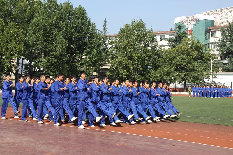 上午9時整,隨著令人振奮的解放軍進行曲軍樂,旗手高舉“銅川工業(yè)技術(shù)學(xué)院”校旗在兩名新生的護衛(wèi)下正步進入會場,全場700多名參訓(xùn)新生列為12個方隊,在教官的帶領(lǐng)下,列隊整裝肅立,院黨委書記楊智博、副院長馮燕勛 檢閱了全體參訓(xùn)新生方隊;隨后,12個新生方隊和著激昂的軍樂、邁著整齊鏗鏘的步伐依次通過主席臺前,接受學(xué)院領(lǐng)導(dǎo)的檢閱。從9時15分開始,12個方隊以整齊劃一的動作分別進行了包括立正稍息、軍容軍姿、隊列轉(zhuǎn)向的隊列表演,以一致的步伐進行了隊列行進間的齊步走、跑步走、正步走的隊列表演,最引人注目的是600名新生的軍體拳表演,場面宏大氣勢磅礴、口號響亮動作到位、整體協(xié)調(diào)令人震撼。