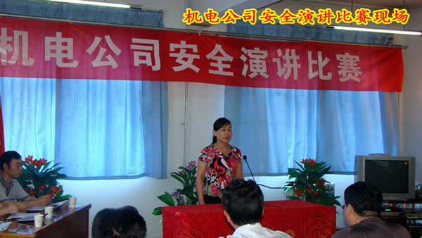 今年安全生產(chǎn)活動(dòng)月,機(jī)電公司組織了豐富多彩的安全活動(dòng),本次安全演講比賽是機(jī)電公司安全生產(chǎn)月安排的一項(xiàng)活動(dòng),得到了公司黨政領(lǐng)導(dǎo)的大力支持,公司司軍社經(jīng)理親臨現(xiàn)場指導(dǎo)工作,使得活動(dòng)開展非常順利,在演講比賽開始前,做了精彩的致辭,